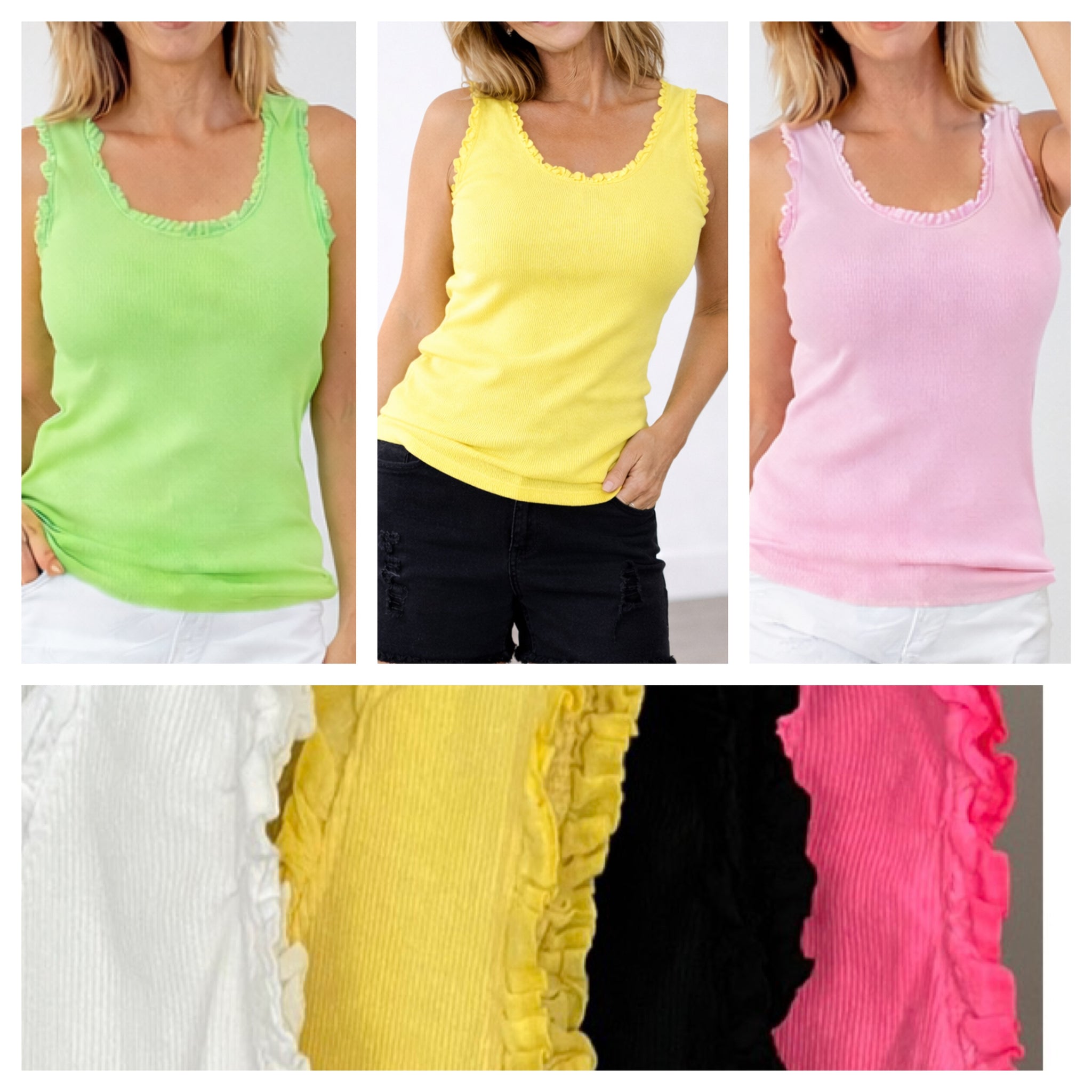 Frill ribbed vest style tops, super comfy with lots of stretch