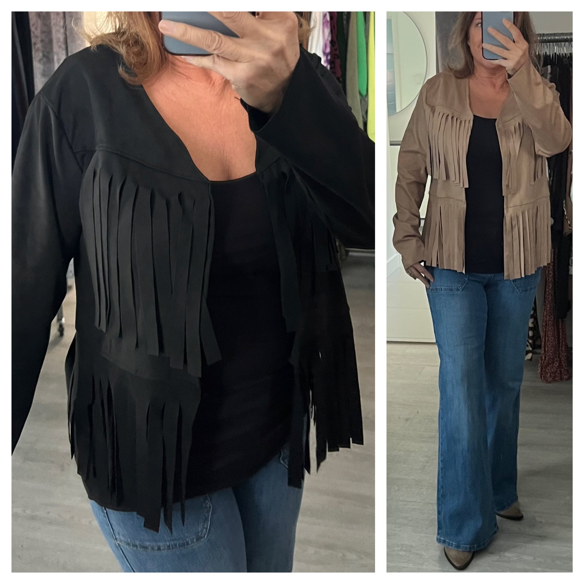✨ Tassel up your look! ✨ These gorgeous Carla suedette-style jackets give all the boho vibes — lightweight, and super comfy to wear. With bolero-style shaping and extended tassel detailing, they’re the perfect statement layer for jeans or dresses this season
