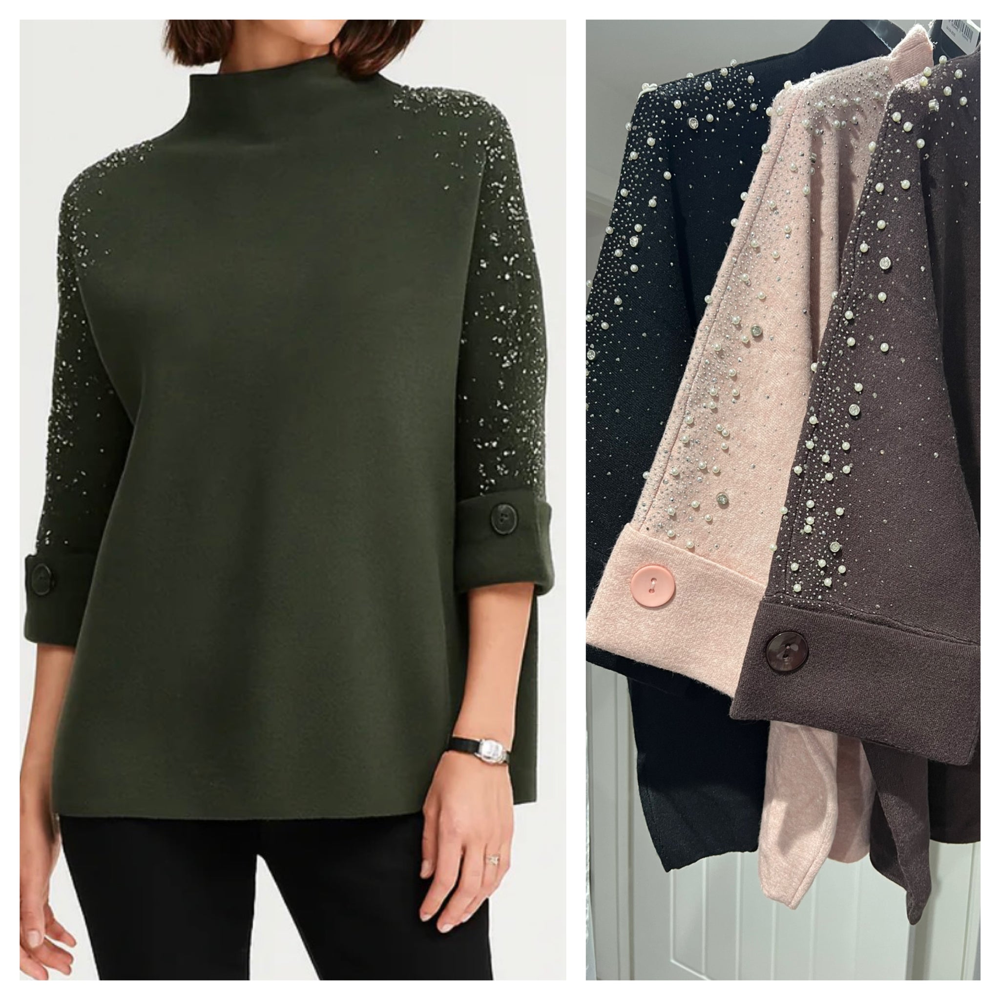 Soft knits adorned with delicate scattered sparkles and pearls — effortlessly chic, perfectly feminine, and oh-so-pretty for the season