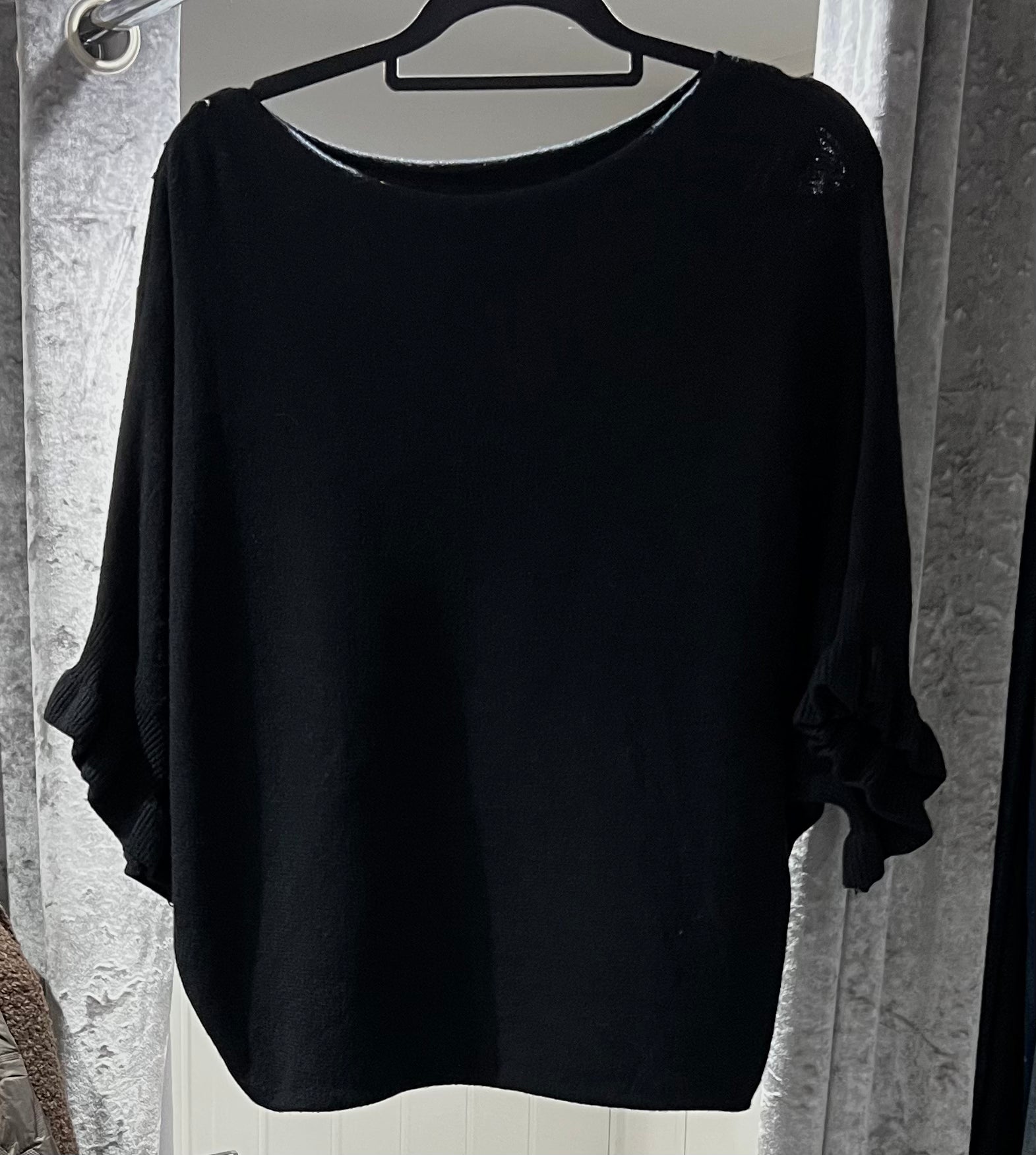 Super soft batwing jumper with the prettiest frill sleeve detail. Easy to wear, flattering shape & available in gorgeous new season colours β€” perfect for dressing up or keeping it casual! 😍
