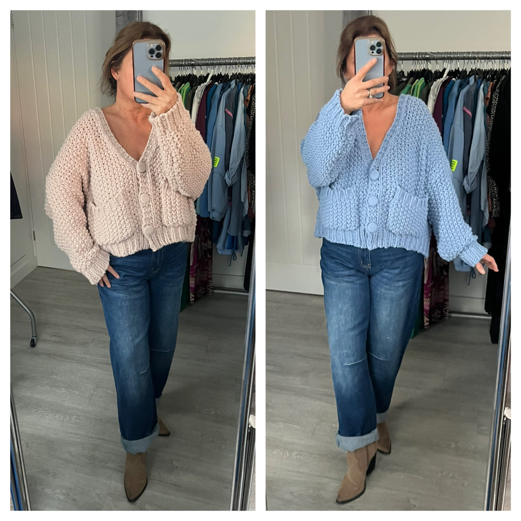 Stunning! luxury & gorgeous chunky, sloppy knit cardie with fabulous big knit covered buttons