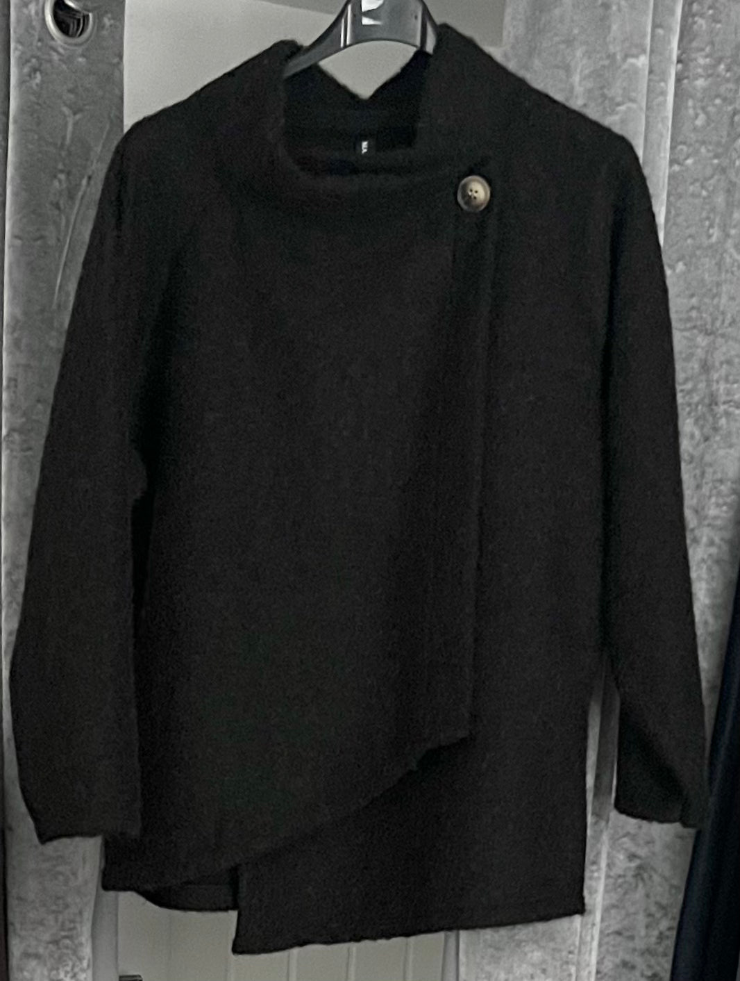The new wrap-style jackets are here — soft, stylish & effortlessly flattering! Fab asymmetric hem. Fluffy textured but not bulky.