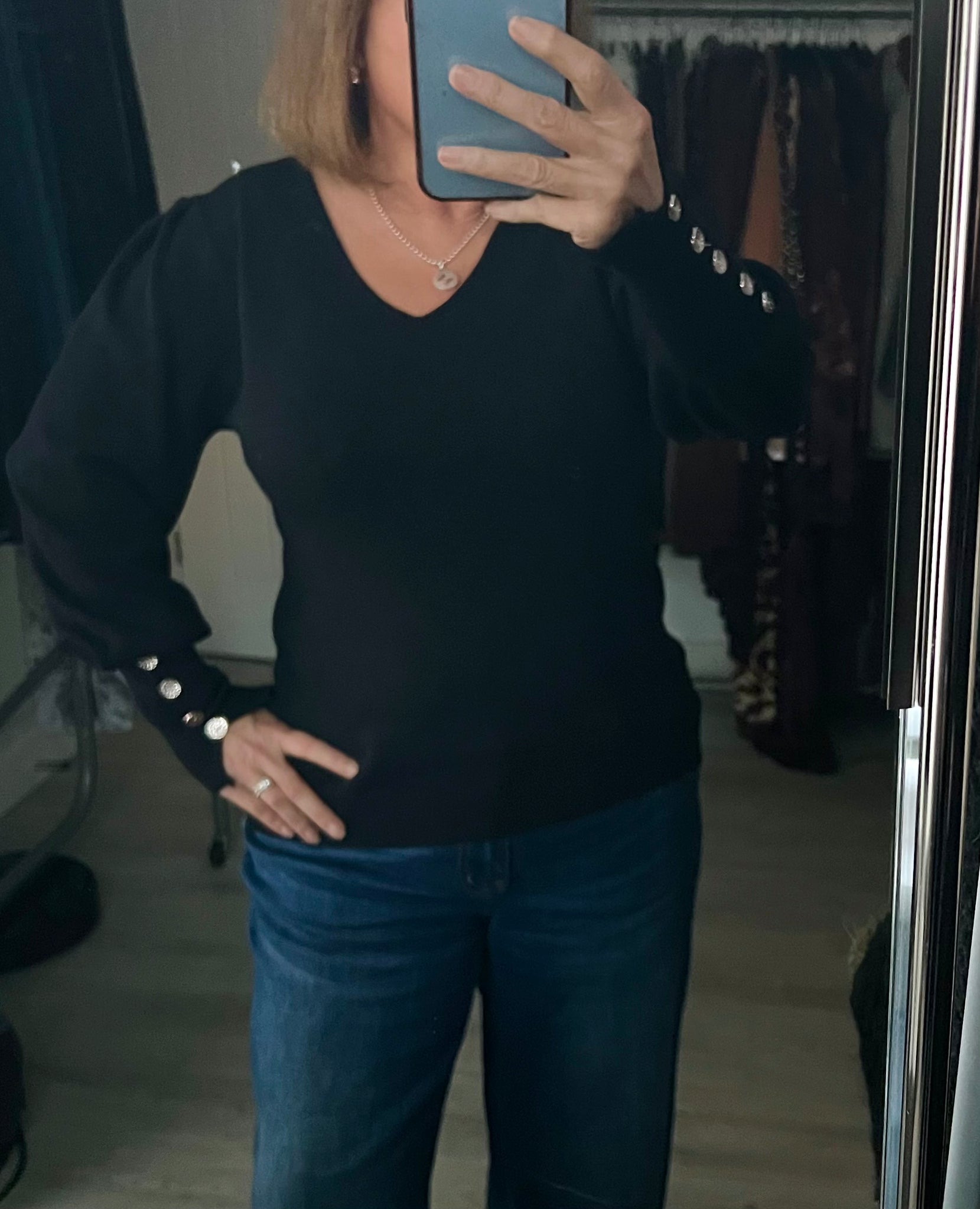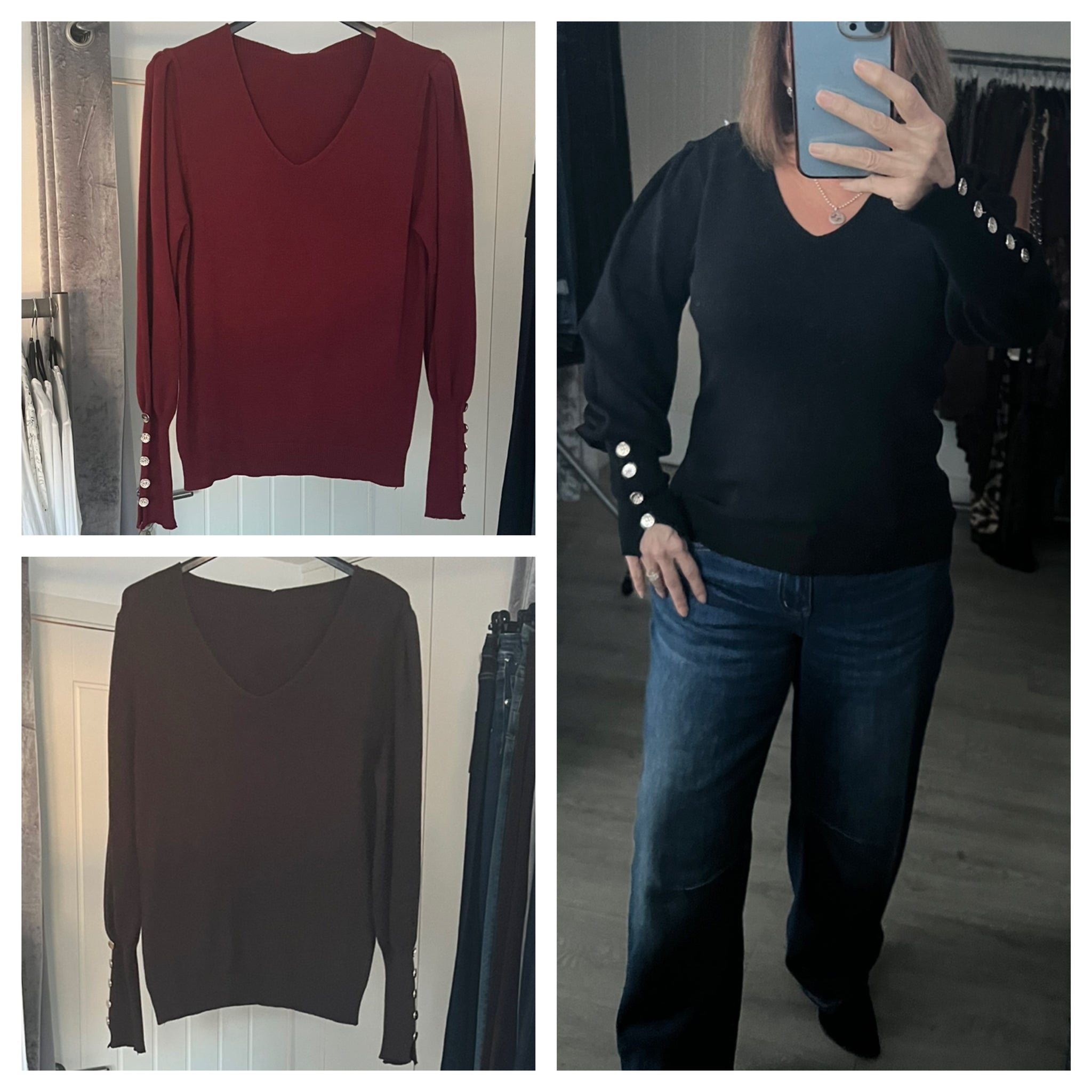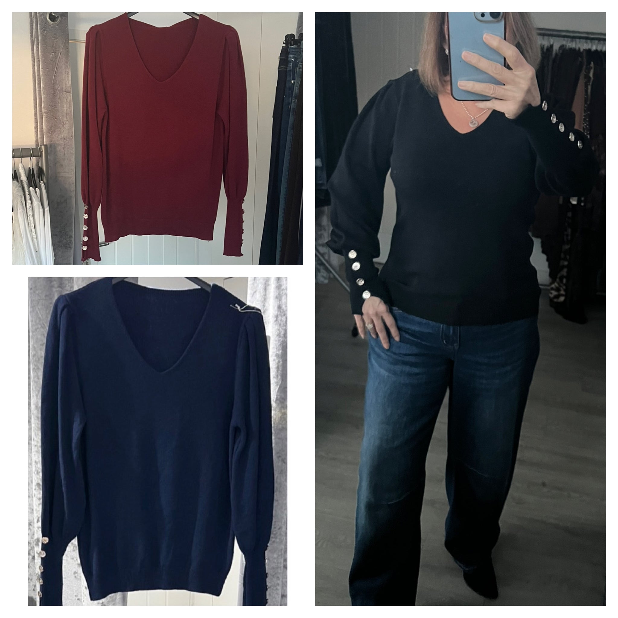 These new knits feature a flattering V-neck, gentle puff shoulder & elegant buttoned cuffs — the perfect mix of comfort and classÂ