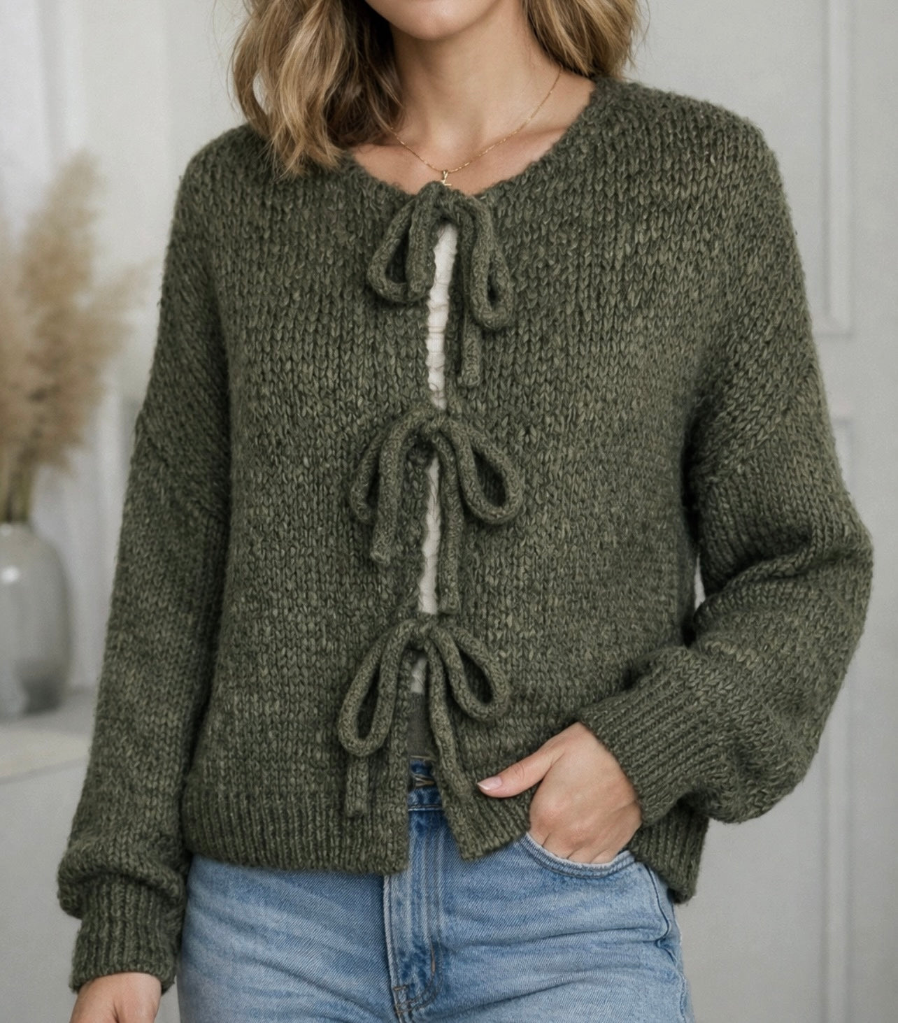 Cosy & warm, super soft this fab tie up cardie with balloon sleeve