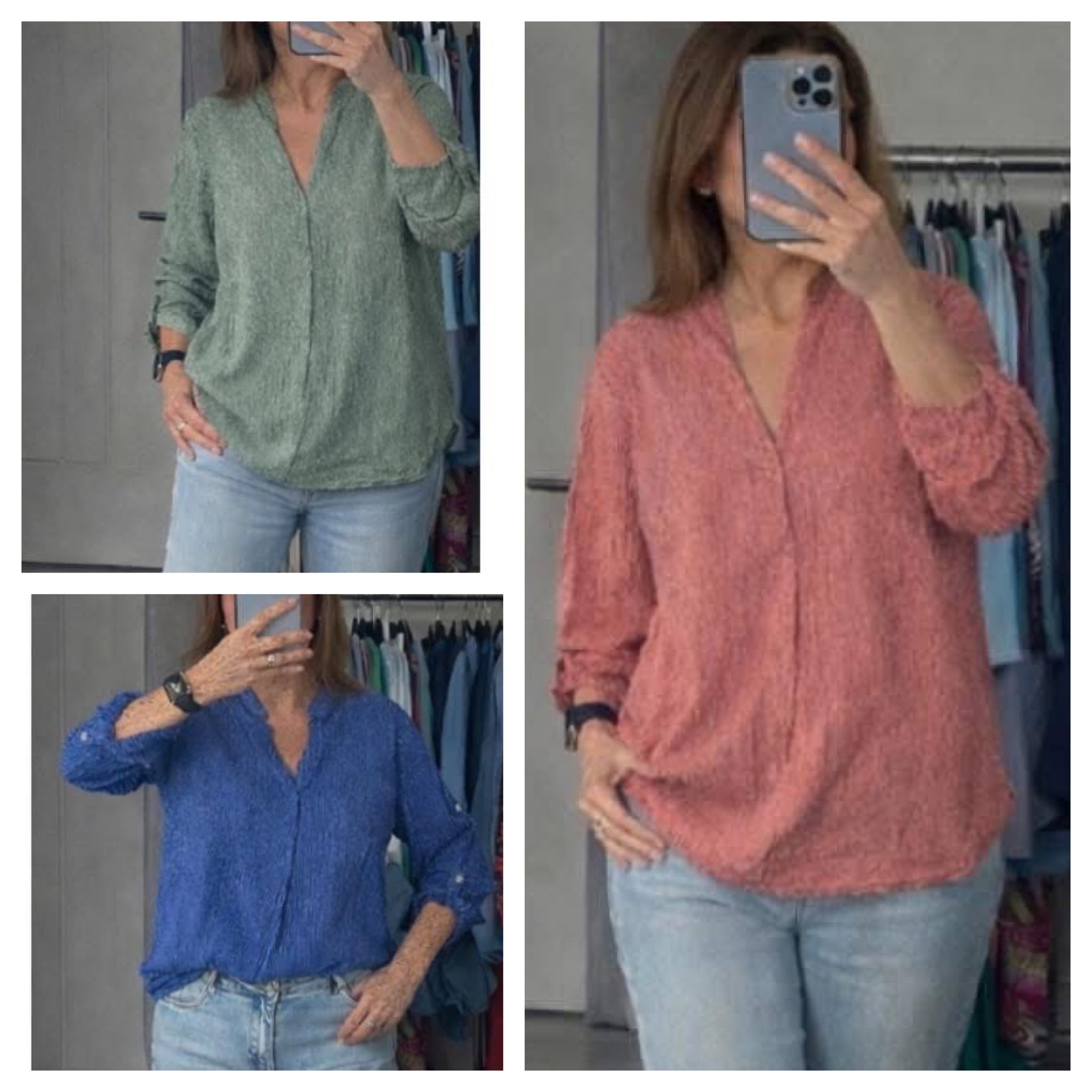 These cotton tops are light, breathable and perfect for everyday chic. A wavy fine stripe with grandad collar that’s sits perfectly. Sleeves can be buttoned up or worn loose, great for layering too