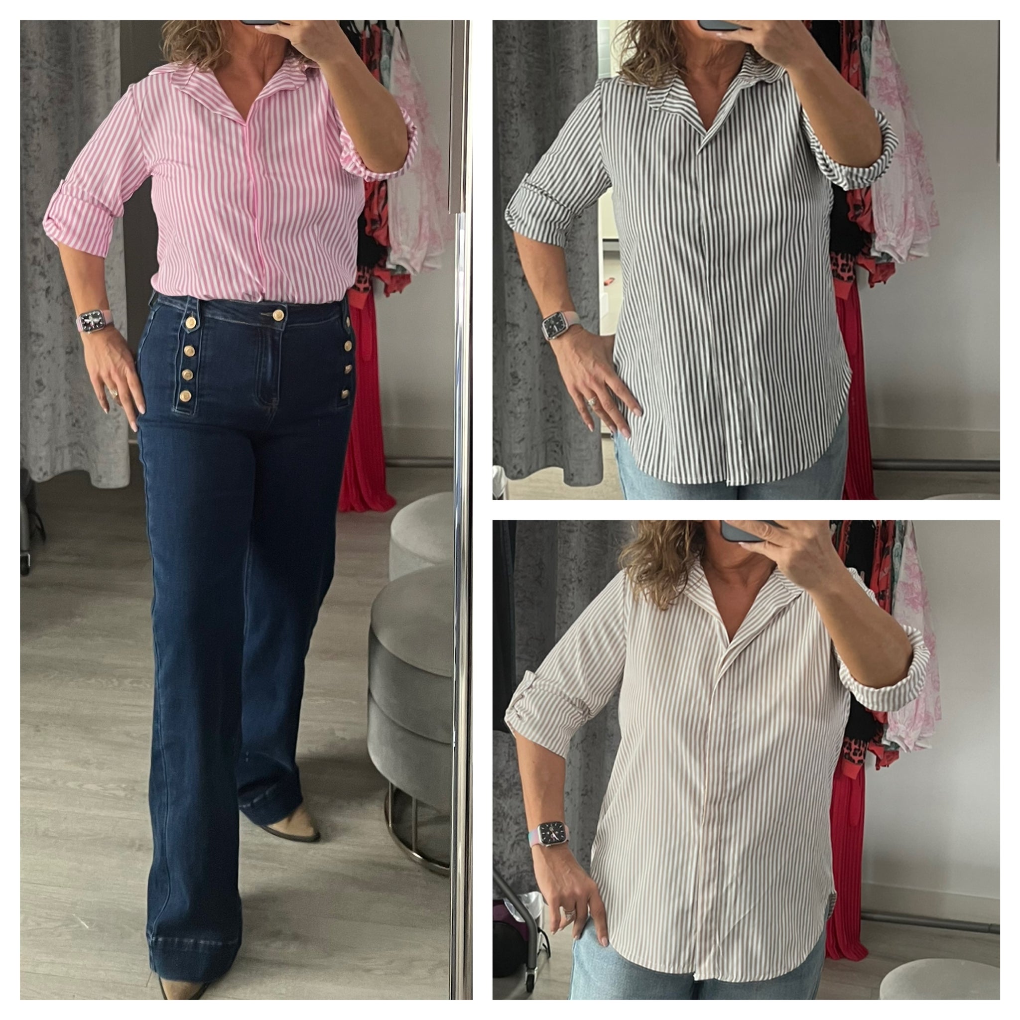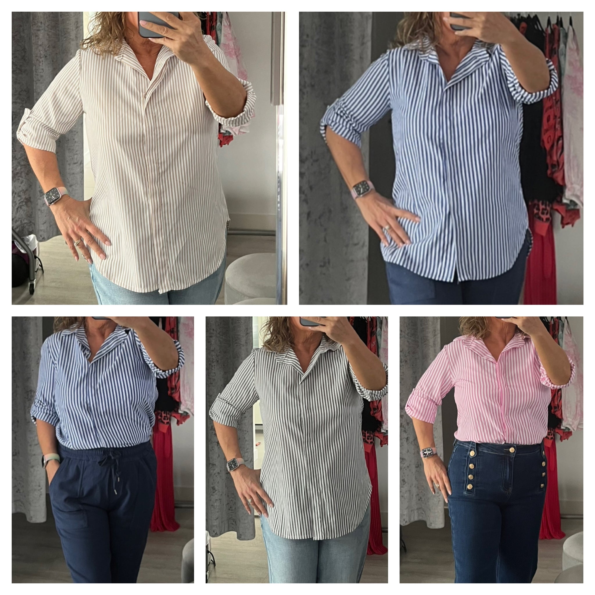 Tailored look stripe cotton shirt with hidden front buttons, single pleat at back